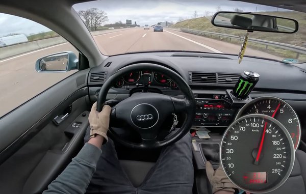 A harmatos, öreg Audi óriásit ment: szinte hihetetlen, de 218 km/h-t facsart ki belőle a sofőr, ami az adatait ismerve elképesztő teljesítmény. Nem kizárt, hogy ebben lejtők is segítségére voltak, de ennyi könnyítés belefér. Az erőtől duzzadó nagytesók biztosan tisztelettel emelnek kalapot a derekasan küzdő, egyhatos A4 előtt.