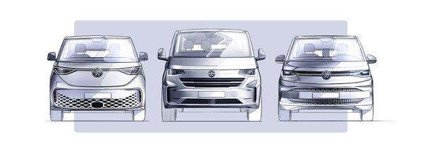 Persze, hiszen a T7-es Transporter már nem kizárólag a Volkswagen terméke: valójában ez már egy átlemezelt Ford Transit Custom, és ez látszik is rajta. Az oldalablakoknál, a hátsó szélvédőnél, a tükröknél és az újdonság arányainál fedezhető fel a rokonság. A korábbi, az alapjait a korábbi T5-östől öröklő T6-os Transporter tehát műszaki alapokkal együtt megy a levesbe.