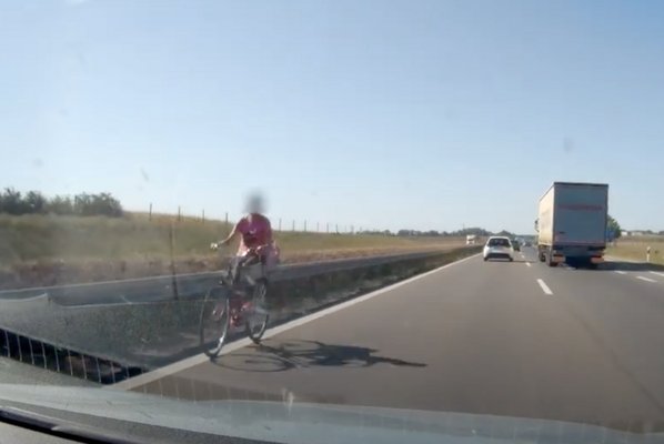 Döbbenetes felvételt készített egy sofőr menetrögzítő kamerája az M5-ös autópályán. A videón az látszik, ahogy a belső sávban meglepetésszerűen feltűnik egy kerékpáros, aki a biztonság kedvéért forgalommal szemben érkezett.