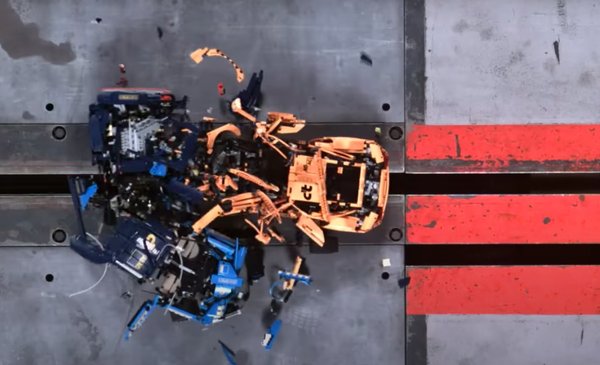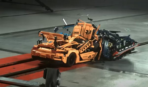 A Lego Porsche 60 km/h-s sebességgel csapódott oldalról az álló Bugattiba. Bár játékautókról van szó, így is fájdalmas nézni, ahogy a pompásan kidolgozott Bugatti és Porsche apró darabokra robban az ütközés erejétől. Ebben az esetben az a szerencse, hogy ezeket az autókat később újra össze lehet rakni, maximum néhány elem sérül ilyenkor annyira, hogy cserélni kelljen.