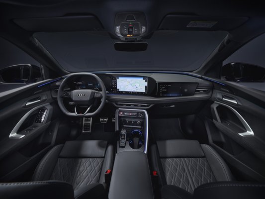 A beltérben kevés újdonságot kapunk, az összkép nagyon hasonlít a közelmúltban bemutatott A5 belsejére. Alap a 11,9 colos digitális műszerfal és a széles, 14,5 colos OLED központi kijelző, ami kiegészíthető egy 10,9 colos utasoldali kijelzővel is. A kijelzőkkel és a hangulatfényekkel a belső modernnek tűnik, elegánsnak már kevésbé.