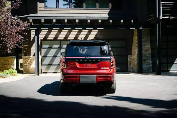 Az új Armada egy óriási hűtőmaszkkal érkezik. A hangsúlyos elemet felül két krómozott csík, oldalt oldalt pedig a két, trapézt formázó fényszóró határolja. A hátsó lökhárító kifejezetten hangsúlyos: a két szélét a karosszéria színére fújják, de a középső betét szürke árnyalatú. A két lámpa között egy széles, fekete csík húzódik, amely kihangsúlyozza a Nissan emblémát és a nagy A R M A D A feliratot. A fapados kivitel 18 colos kerekeken gurul, de aki szereti a feltűnést, akár 22 colos felniket is rendelhet.