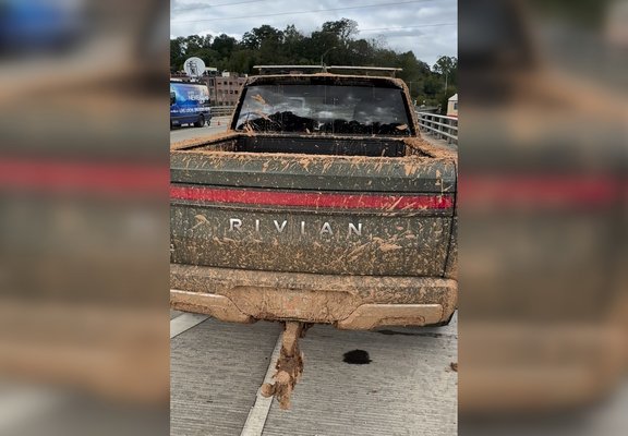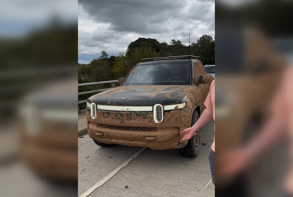 - Az elektromos Riviant beborította a sár, a tulaj arra készült, hogy az autója totálkáros.