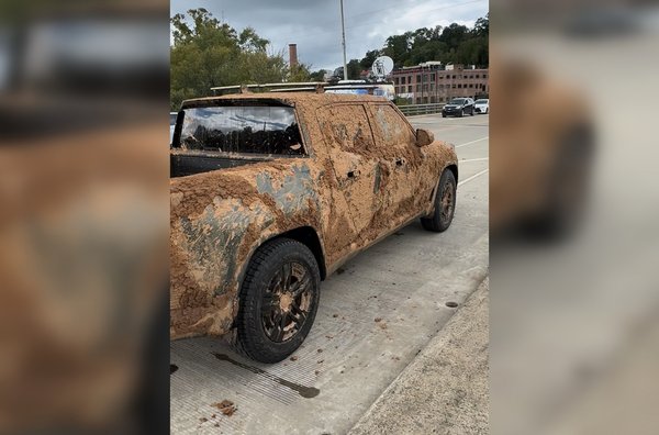 Itt van például az a Rivian R1T, amit a tulajdonosa a hurrikán érkezése előtt leparkolt a Swannanoa folyó közelében, Asheville-ben. Ahogy lecsapott a Helene, a folyó vízszintje megemelkedett és hamar elárasztotta a környéket. A tulaj végül az eredeti helyétől közel száz méterre találta meg az autóját, miután újra meg tudta közelíteni a parkolót.