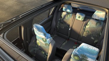 A legfeltűnőbb különbség kétségtelenül a sárga vizor az elején, valamint a belterében a virágmintás műszerfal és ülés. Ezen harmonikatető is van, ami elvileg a sima Renault 4-hez is kérhető lesz.