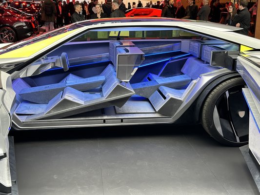 Azt nem mondom, hogy ez volt az autószalon legextrémebb koncepciója, hiszen erős versenyben van az Alpine A390_β-val a Renault-oázisából, de talán legszexibb. A vonalvezetés kiváló, az öngyilkos ajtók és a B-oszlop hiánya mindig feldobja ezeket a koncepciókat. Az orrára simán mondhatom, hogy cápa, fölényesen nyomul a motorháztető, ami alatt klasszikus értelembe vett motor nincs. Egy ilyen autónál erre már nincs szükség, nyugodtan előretolhatták az utasteret és szinte a hátukra fektették az utasokat.
