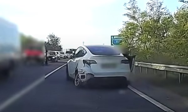 A baleset okairól nincs információnk: történhetett simán figyelmetlenségből, de akár műszaki hiba is okozhatta. A Tesla bal hátsó kereke és futóműve sérült, a furgonnak pedig a bal eleje kapott. Személyi sérülésről nem tudunk.