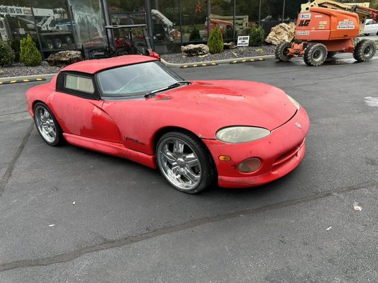 28 évnyi vásárló hívogatás a szabad ég alatt pedig alaposan megtette hatását. A mindössze 12 mérföldet (19 kilométert) megtett Viper fényezése teljesen bemattult, a fényszórókat és a műanyag elemeket pedig alaposan megette az UV. Az oldalsó ablakpanelek teljesen bemohásodtak, viszont a króm felni egészen jól bírta az idő vasfogát.