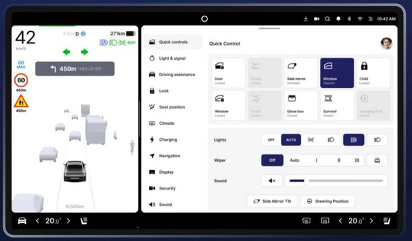 Ez a belátás jó, viszont az augusztusi CEO Investor Day rendezvényen bemutatott új UX/UI ennek az ellentétét mutatja. A rendezvényen egy kép erejéig bemutatták, hogy milyen lehet a Hyundai új infotainment rendszere, ami csaknem 1:1-ben hasonlít a Tesláéra: