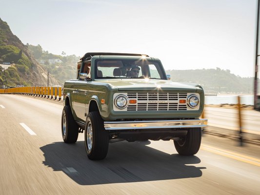Főleg az utóbbi tevékenység érdekes. A cég oldalán kevés infót lehet találni a pontos folyamatról, de a lényeg, hogy egy új Bronco vázára a régi karosszériaelemeit húzzák fel, kicsit átalakítják a belteret, erősebbre hangolják a motort és komolyabb futóművet építenek be. A klasszikus karosszériát valószínűleg házon belül állítják össze és az eredeti autó vázát nem módosítják, így annak az anatómiája sem változik meg jelentősen. A kész autókat végül ugyanúgy Broncónak hívják, ez pedig szúrja a Ford szemét.