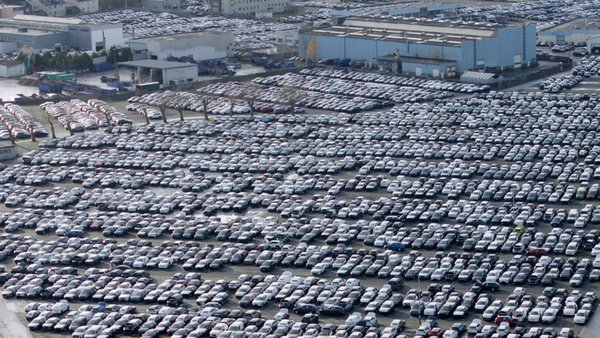 - Hegyekben állnak az eladatlan autók egy német logisztikai központban.