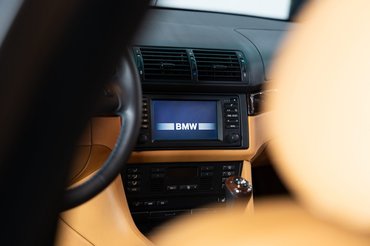 Főleg kívülről tűnik érintetlennek a Carbon Black Metallic nevű fényezés, pedig az autónak volt egy kisebb balesete 2019-ben, a helyreállítás azonban precíz munka volt. Más nyomot nem hagyott az autón az elmúlt két évtized, és az M részleg által tervezett alkatrészek még mindig nagyon vaddá teszik az elegáns szedánt. Ilyen a négy kipufogóvég, a különleges lökhárítók, a finom kis spoiler a csomagtréfedélen vagy a 18 colos alufelnik. Ezeken egyébként Michelin Pilot Sport All Season 4 gumik feszülnek, alattuk pedig komoly fékrendszer hivatott megállítani a közel 1,7 tonnás testet.