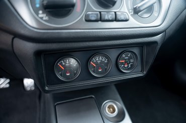 Szintén bőrhuzatot kapott a MOMO kormány, ami mögött 9000-ig skálázott fordulatszámmérő és egy (170 mph) 274 km/h-ig skálázott kilométeróra van. A műszercsoportba nem fért el minden szükséges műszer, így a klímapanel alatt alakítottak ki helyet még háromnak. Innen nézhetjük az akkumulátorfeszültséget, a motor hőmérsékletét és a turbónyomást is, illetve a kesztyűtartóba került egy digitális műszer, ami a levegő-üzemanyag keverék arányát mutatja.