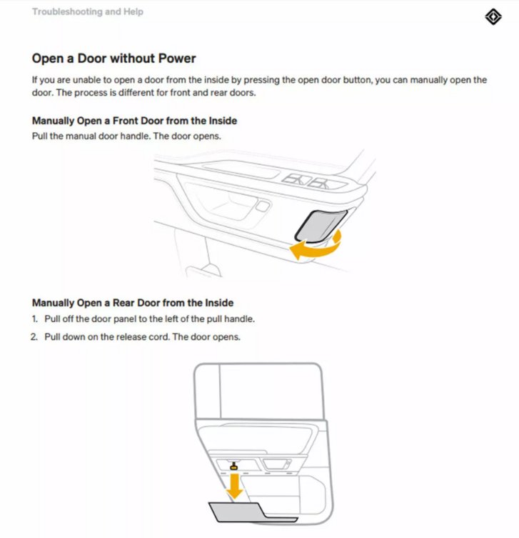 A vizsgálat során azt is megállapították, hogy a kézi működtetésű kilincs megfelelően működött a baleset idején. Hozzátették, hogy az előírásoknak megfelelően minden Rivian modellben van mechanikus működtetésű ajtónyitó, ami biztosítja, hogy az utasok bármilyen körülmények között biztonságosan elhagyhassák az utasteret. Emellett rámutattak, hogy ezek elhelyezkedéséről és működtetéséről részletesen írnak az autók használati útmutatójában, amit javasolnak minden ügyfelüknek, hogy olvassanak el.
