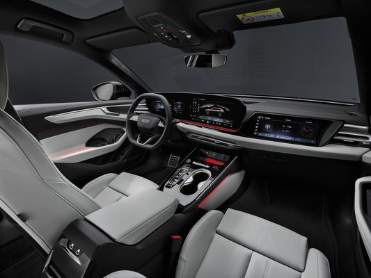 Ha valaki látott belülről friss Audit mostanában, akkor nem fogja meglepni az új A6 belseje sem. A beltér hasonlóan körülveszi az utasokat, mint a Q6 és az SQ6 belseje. Ahogy többi modellben, az infotaintment és a műszeregység kijelzője egy hatalmas, közös lapra került, opcionálisan utaskijelző is elérhető. A belső modernebb lett, mint az elődé, miközben látszik, hogy konzervatív értékeket képvisel.