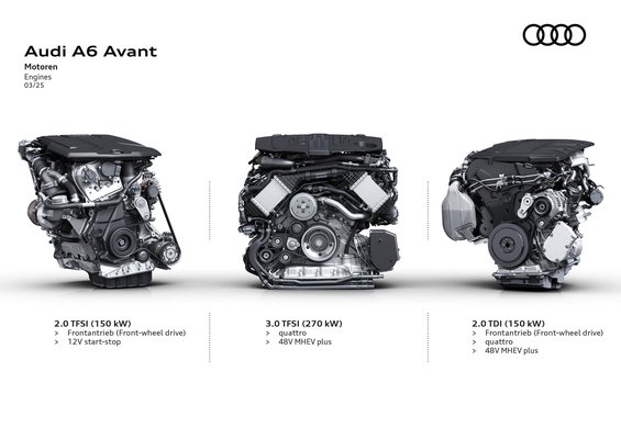 Egyelőre csak az Avantot, vagyis kombit mutatták be, a szedán, az Allroad és az RS6 változatok később érkeznek. A benzines Audi A6 Avant alapára Németországban 58 ezer euró, vagyis nagyjából 23,1 millió forint. Az első példányok előreláthatóan 2025 májusában érkezhetnek meg az ügyfelekhez.