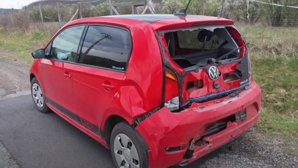 Nem jártak jól, a baleset végül megtörtént, csak nem úgy, ahogy azt gondolták. A megálló Volkswagent hátulról telibe találta egy Land Rover, aminek a sofőrje nem fékezett időben. Az eredmény egy, a tulaj elmondása szerint totálkárosra tört Volkswagen. Az Up! sofőrje és utasa is megúszta nyak- és hátrándulással, ami a testes Defendert látva szerencsésnek mondható. Az Opel ekkor már messze járt.