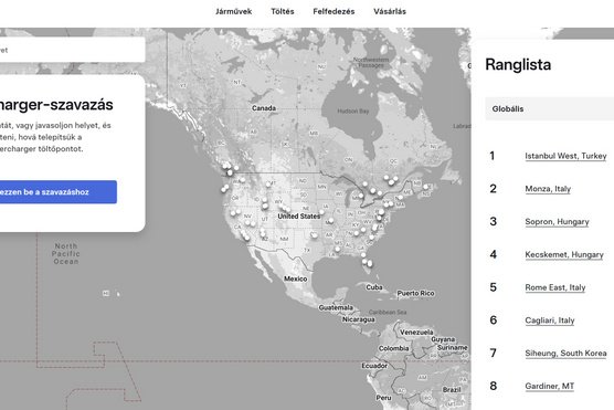 Magyaroszágon egyelőre tíz állomás van. A Tesla suparchargeres térképe szerint várhatóan Pécsen létesítenek majd újat is, a térképen egy szürke kis ikon jelzi ezt. A Tesla lehetővé teszi, hogy az autósok szavazzanak arra, hogy hol legyen újabb töltőállomás. Beszédes, hogy a világranglistán a jelenlegi állás szerint a törökországi Isztambul és az olaszországi Monza után Kecskemét és Sopron következik.