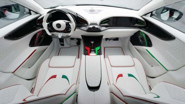 Az olasz trikolor nemcsak kívül, de belül is egyértelmű stílusjegye az autónak, mindegyik ülés, biztonsági öv és középső konzol kapott belőle. A Pugnator Tricoloréből szerencsére csak három darab készül, így valószínűleg nem kell azon aggódnunk, hogy lakóhelyünk környezetében parkolva rontja majd ingatlanunk értékét vizuális környezetszennyezés okán.