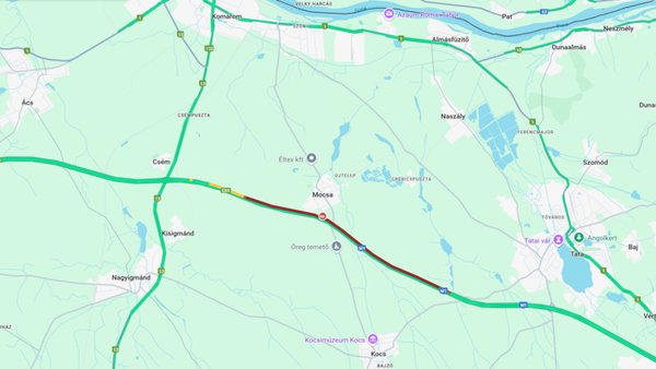 Az Útinform jelentése szerint Hegyeshalom irányában, Tata és Komárom között új terelést építenek ki a munkások. Emiatt a forgalom a leállósávban halad, ami gigantikus torlódáshoz vezetett. A 72-es kilométertől már 5 kilométernél is hosszabb a kocsisor.