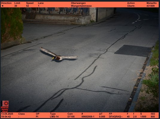 Szokatlan gyorshajtót fogott egy sebességmérő kamera egy svájci településen. A Könizben lévő traffipax bemért egy felelőtlen gyorshajtót, aki a 30-as zónában 52 km/h-val száguldott. – szúrta ki a Telex. A sportérték itt abban rejlik, hogy a tettes mindezt jármű nélkül követte el. Onnan nézve ez nem meglepő, hogy az említett huligán egy vadkacsa, aki jó eséllyel amúgy sem tudna autót vezetni.