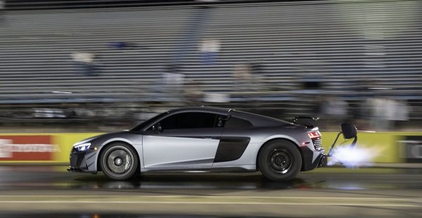 Ez a leggyorsabb negyedmérföldes idő az R8-ak és Huracánok történelmében. Még meredekebbé teszi a dolgot, hogy mindezt – egy teljesen átépített – duplakuplungos automatával tudja az autó. Külön elképesztő, hogy az R8 mennyire stabilan és kiegyensúlyozottan futott végig. Semmi dráma, csak olyan, mintha a felvétel fel lenne gyorsítva.