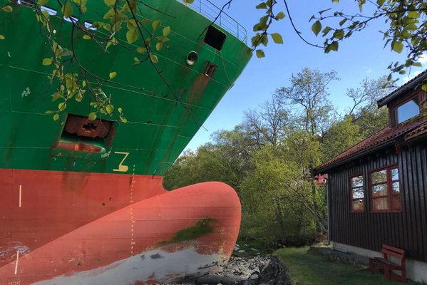 Valószínűleg élete legkülönösebb reggelére ébredt Johan Helberg, akinek a napokban egy hatalmas konténerszállító hajó állt meg a kertjében. A 135 méteres NCL Salten a napokban ütközött neki a partszakasznak, amikor a Trondheim-fjordba érkezve Orkanger városa felé tartott.