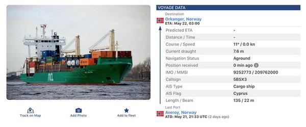 ⚓A resident of the #Norwegian Trondheimsfjord, Johan Helberg, discovered a 135-meter #cargoship in his gardenThe ship went off course, ran aground and stopped right next to a private house. The owner did not even wake up when the multi-ton colossus appeared under the windows -… pic.twitter.com/vuM0EQVokI — News.Az (@news_az) May 23, 2025