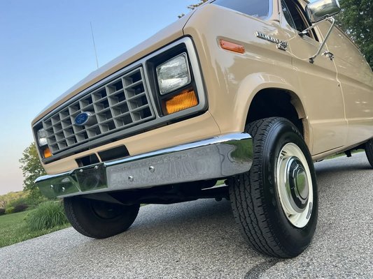Persze nem csupán a Ford érdeme amiért ilyen szépen megmaradt a Transit sorozat elődjének tekinthető Econoline, az előző tulaj 2024-ben felújította az egész autót. Bár állítólag lakatolni nem kellett, de felfrissítették a Light Desert Tan fényezést, a króm felületeket, illetve az acél felniket – a dísztárcsákkal együtt. Az 5,8 literes, V8-as motoron inkább csak alapvető karbantartásokat végeztek: felújították a hatalmas, négytorkú karburátorát, a hűtőrendszert és a gyújtás főbb alkatrészeit, illetve az EGR-t és a katalizátorokat – milyen érdekes, hogy ezek a rendszerek már akkoriban is elérhetőek voltak egy furgonhoz.
