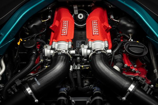 A technikai alapokat az elöl, középen elhelyezett 3,8 literes, biturbó V8-as adja, amely most 640 lóerőt tud (19-cel többet, mint a Roma). A nulla-százas sprint 3,3 másodperc, a végsebesség pedig 319 km/h. A teljesítmény-növekedés részben a finomabb turbóvezérlésnek, könnyebb vezérműtengelyeknek és új olajnak köszönhető.