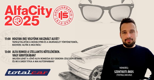 Az eseményen a Totalcar is jelen lesz, az Alfa Amore csapata Szentkuti Ákos kollégánkkal beszélget majd a használt Alfák piacáról és az Alfa Romeo márka jövőjéről.