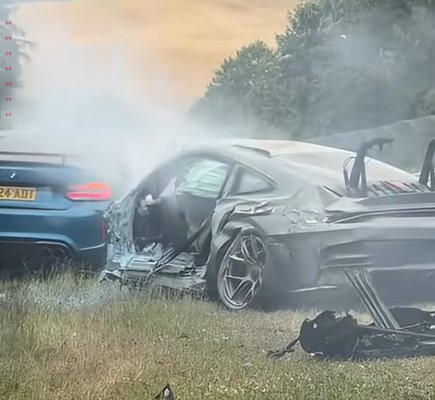 A baleset felvételei alapján egy Porshce 911 GT3 RS egy F87-es BMW M2-t kergetett. A Porsche sofőrje gyorsabbnak bizonyult, aki egy gyors bal kanyarban belső ívben szerette volna megelőzni a BMW-t, de annak sofőrje is ugyanabban az ívben kanyarodott, így akaratlanul PIT-manővert hajtott végre a 911-en. Az autó kipördült és egy szalagkorlát végének csapódott, de a BMW sofőrje is elvesztette az irányítást, így ő is ugyanoda sodródott, ezzel méginkább odacsapva a Porschét, ami ettől egy robbanás kíséretével elrepült.