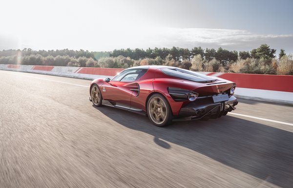 A 33 Stradale az olasz gyártó jelenlegi poszterhőse, amit lehetett kérni duplaturbós V6-ossal, ami 621 lóerős, vagy elektromosan, úgy 750 lóerős. Bottas az előbbit választotta.