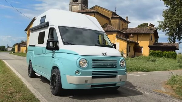 Az átalakítás picit több, mint egy retró orr-ráépítés: teljesen új külsőt kap a Ducato, kerek fényszórókkal és lámpatestekkel, régi vágású motorháztetővel és sárvédőívekkel, amelyek szépen visszahozzák az 50-es és 60-as évek Fiat 615 és 616 furgonjainak hangulatát. A tető, az ablakvonal és a karosszéria felső része maradt a modern donoré, de ügyesen illeszkedik a retró panelekkel. Belül viszont gyakorlatilag minden maradt a Ducato-féle kialakítás.