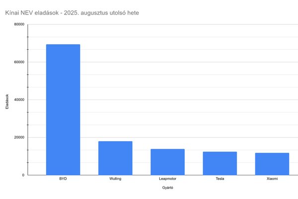 Csak az összehasonlítás kedvéért: Magyarországon 2024-ben 121 ezer autót adtak el a teljes újautó-piacon. Ezt csak a BYD két hét alatt összehozza Kínában.