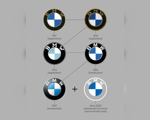 A BMW többször alkalmazott apró változtatásokat az 1917-es logón, de a lényeg mindig megmaradt: a kis körben középen két kék és két fehér negyedkör látható, körülötte széles, fekete sávval és BMW felirattal. A feketét a kék-fehértől eleinte aranyszínű karika választotta el, ahogy a felirat és a logó széle is aranyszínű volt.