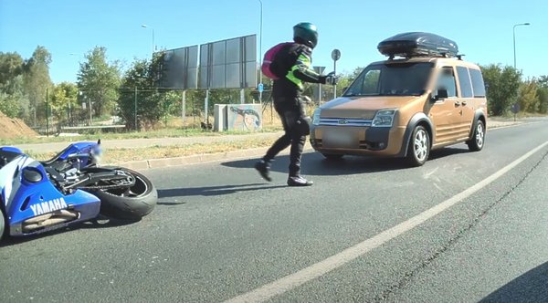 A Ford Tourneo Connect sofőrje valószínűleg nem reagált időben, ezért hátulról csúnyán eltalálta az ekkor már álló motort. A felvételeken jól látszik, hogy a Ford blokkoló első kerekekkel csúszott a motor felé, így a gumik és az ABS állapotával kapcsolatban is felmerülnek kérdések.