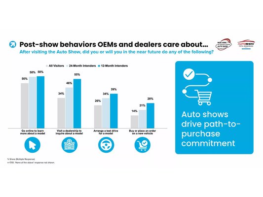 A legtöbben nem konkrét vásárlási szándékkal mennek ki: csak 37 százalék mondta, hogy informálódni megy a rendezvényre, de 84 százalékuk végül mégis azt nyilatkozta, hogy az autószalon hatással volt a jövőbeli választására. A felmérés szerint azok közül, akik egy éven belül új autót terveznek vásárolni, 58 százalék online kutatott, 55 százalék felkeresett egy kereskedést, és 39 százalék tesztvezetést is szervezett. Végül majdnem minden harmadik látogató vett autót.