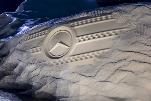 Idén 130 éve foglalkozik a Mercedes haszongépjárművekkel és ebben a műfajban is küszöbön van az új kor, így ennek a két eseménynek megfelelően ünnepelték az évfordulót. Egy 6,5 méter hosszú, 2,5 méter széles és 2,75 méter magas kőtömbből faragott szobor formájában mutogatják a Sprinter következő generációját, de éppen csak annyi részletében, ami még nem árul el túl sokat. A műalkotást a The Boulder névre keresztelték és minden bizonnyal ez az eddigi legnehezebb Sprinter, ami valaha készült.
