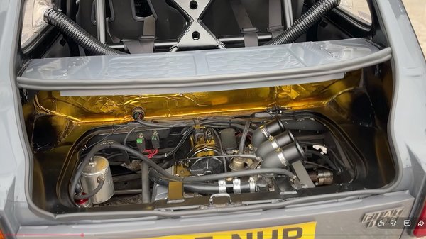 Kell a fékerő, hiszen az eredeti teljesítményt sikerült megnégyszerezni. Az eredeti 650 köbcentis blokk helyére egy BMW K75 motorját építették be, ami gyári állapotában is 75 lóerőt, illetve 68 Nm nyomatékot produkál. Ezt viszont egy kicsit megpiszkálták és jelenleg száz lóerő körül tudhat, ami rengeteg egy ennyire pici és könnyű autóban – a tulaj becslése szerint olyan 500 kiló körül lehet a Kispolszki az átépítések után. A motor egy olyan hatsebességes, szekvenciális váltóhoz csatlakozik, ami szintén Olaszországból származik és kifejezetten ilyen, kisméretű versenyautókhoz tervezték. A videó alapján elképesztően finoman vált és jól kezeli a motor teljesítményét.