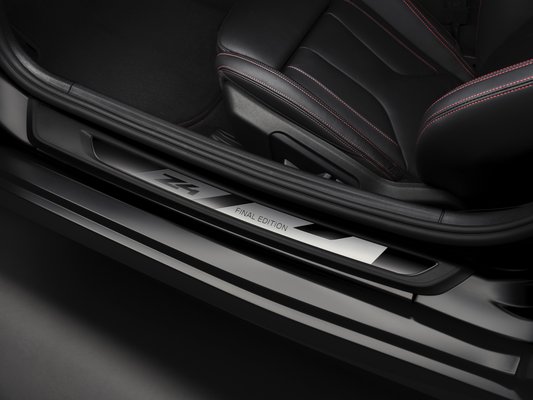 Belül ugyanez a hangulat folytatódik: a sportülések, az ajtókárpit és a középkonzol fekete bőr és Alcantara kombinációjában úszik. Kevés szín jut az utastérbe: a varrások vörösek, a biztonsági övek pedig BMW M trikolór csíkozást kaptak. A küszöbön „Final Edition” felirat emlékeztet rá, hogy ez a vég.
