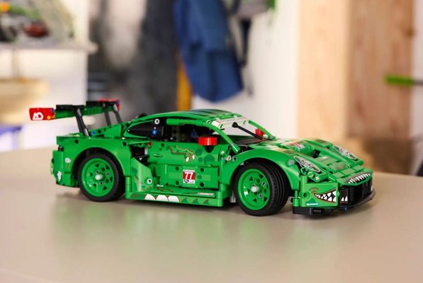 Most remek taktikai érzékkel egy olyan autónak készítették el az apró műanyag elemekből álló változatát, ami egyébként is a népszerűsége csúcsán van. Ez az Autumn Oaks Racing 77-es rajtszámú Porsche 911 GT3 R versenyautója, aminek a beceneve, hogy Rexy. Utóbbi nem véletlen: a zöld Porschét zsarnokgyíknak, vagyis Tyrannosaurus rexnek matricázták.