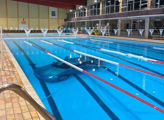 További nagyszerű hír, hogy a beltéri medencében nem talált el senkit az XF, így a balesetnek szerencsére egyetlen sérültje sincs. Legalább élő, hiszen a Jaguar pórul járt: miután az autó maradéktalanul a medence aljára süllyedt, szinte biztos, hogy menthetetlen.