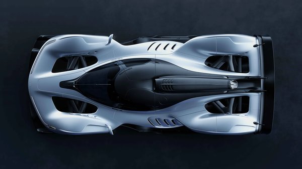 Newey egyik utolsó mániákus módosítása az volt, hogy a kipufogót a motorborítás gerincére költöztette. Ez hatalmas műszaki kihívás volt, főleg hőtechnikai oldalról, de megoldották. Középen egy teljesen egyedi fejlesztésű, 4,5 literes Cosworth V10 dolgozik, ami 15000-ig forog és önmagában ezer lóerőt tud. A hátramenetet és a váltások alatti nyomatékkiesést egy villanymotor kezeli, ami ráadásként még 200 lóerős elektromos lóerőt is ad. A hang viszont tiszta kilencvenes évek végi F1 nosztalgia. Newey kedvenc F1-es hangja a McLaren–Mercedes MP4/15-é volt, ezért a tíz az egybe leömlőt kifejezetten erre a sikító hangra hangolták.