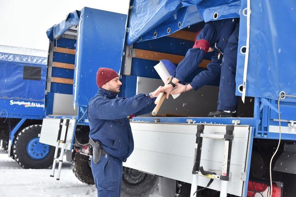 A rendőrök pokrócokat és hólapátokat is szállítanak a hatalmas teherautókkal, így segítve a többi rendőr, illetve a védekezésben segédkezők munkáját. Ezekkel a járművekkel kicsi az esély rá, hogy elakadjanak a hóban.