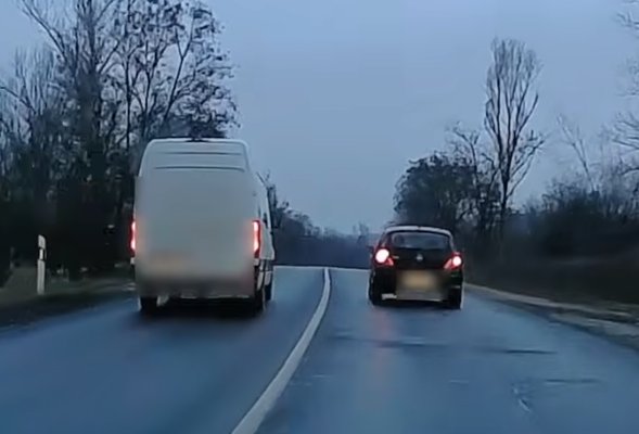 Egy esztergomi furgonost se nagyon érdekelték a szabályok és a többiek: a kamerás autó mögött érkező kisteherautó pilótája először levágta a kanyart, majd necces előzésbe kezdett. A biztonság kedvéért emelkedőn, záróvonalon keresztül.