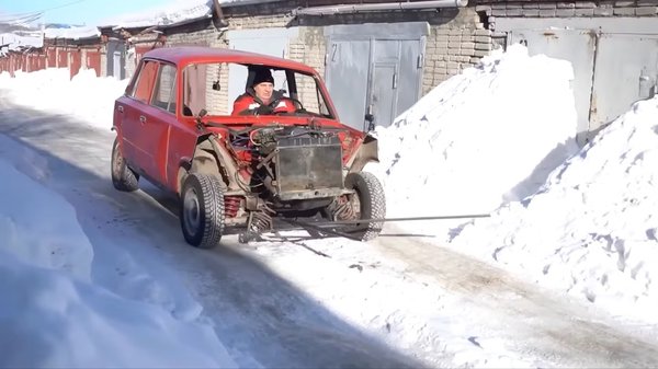 Ettől függetlenül már akkor ijesztően mozgott a szerkezet, amikor a Lada motorja még csak alapjáraton ketyegett. A szerelők közül többen is hátráltak, amikor egyikük a sofőrülésből túráztatta a szerkezetet. Azonban ez sem tántorította el őket attól, hogy elvigyék az autót egy próbakörre. Csak élesben fog kiderülni, hogy miként szolgálnak az acélrugóból készült motortartó bakok és az egyedileg összehegesztett kardántengely.