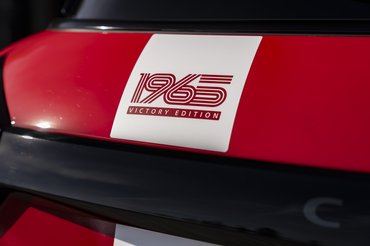 A gyártó Chili Red fényezéssel emlékszik az eredeti autóra, amelyen van egy aszimmetrikusan elhelyezett, fehér versenycsík. Magánépítéseknél egyébként gyakran előveszik ezt a dizájntrükköt, azonban az 1964 Victory kivitelek oldalán lesz egy egészen egyedi 52 logó, ami az eredeti autó versenyszámára utal. Emellett elérhetőek az olyan, Minire amúgy is passzoló kiegészítők, mint a fehér fényezés a tetőn és a tükrökön. Így a két szín vagány kontrasztot ad a Mini modelleknek, pont, mint 61 évvel ezelőtt a versenyautónak. Az egyedi, 18 colos alufelnik szintén a ralilegendát idézik, illetve a C-oszlopokon elhintettek egy-egy pofásan kalligrafált 1965 logót.