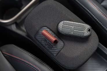 Az utastérben ennél valamivel kevesebb az utalás, de a Mini itt sem hagyta cserben a márka rajongóit. A kormány alsó részén és a küszöbökön vannak 1965 logók, illetve az autók kulcsára is felkerült az egyedi 52 felirat, ami az autó két oldalára is. Emellett az új Miniknek egy egészen egyedi belső alkatrészén, a középkonzol alatti tárolón is megemlékeznek az elődről. Az utasterek alapszíneit ugyanúgy a JCW árnyalatok adják, mint a hagyományos kiviteleknél, viszont ehhez a dizájncsomaghoz egyértelműen a piros-fekete kombináció illik a legjobban.