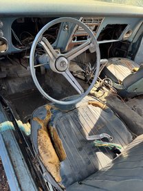 A beltérre ráfér majd egy átfogó felújítás: a sötétkék belső teljesen eredeti, de már csúnyán elrágta az idő vasfoga. Az ülések szakadtak, illetve több alkatrész is hiányzik, de a leírás és a fotók szerint a legtöbb cucc megvan. A tető is egyben van, ráadásul eredeti, valószínűleg menthető.